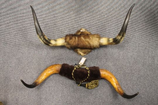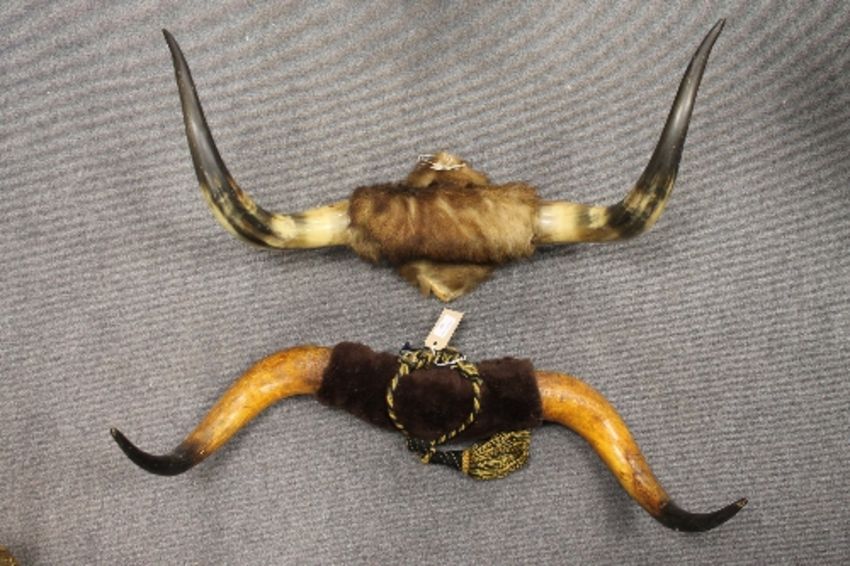 Two sets of large cow horns. (2) CONDITION REPORT: Good condition.