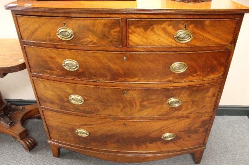 A Regency mahogany bow fronted chest with five drawers, with 109cm.