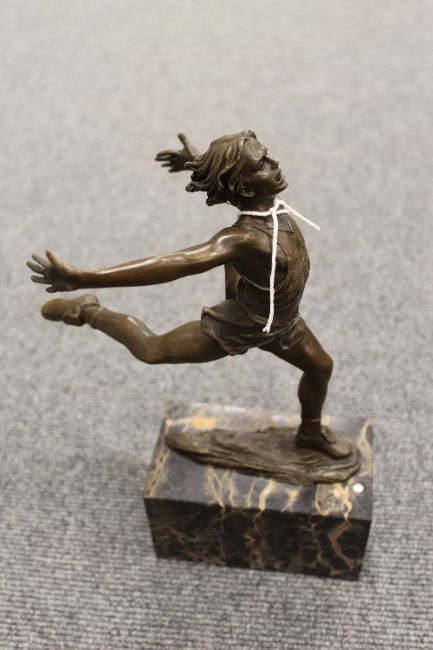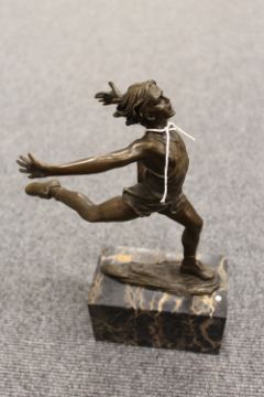 After Milo - bronze study depicting a runner on marble plinth, height 28 cm. CONDITION REPORT: Good Condition, twentieth century example