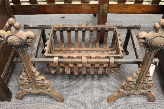 A nineteenth century cast iron fire grate with dogs.