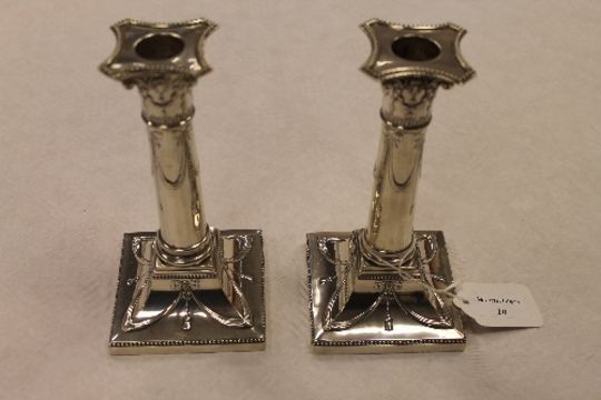 A pair of silver classical style candlesticks, London 1896, height 18.5 cm, 35 oz. (2) CONDITION REPORT: Detachable sconces and with loaded bases