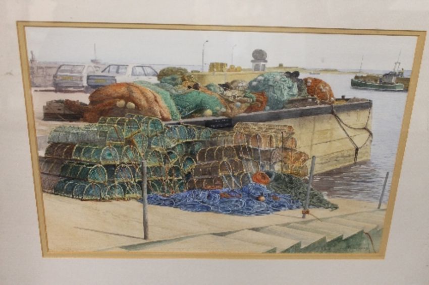 Peter Gray : Nets, pots, ropes at Seahouses, watercolour, signed, 44cm x 30cm.