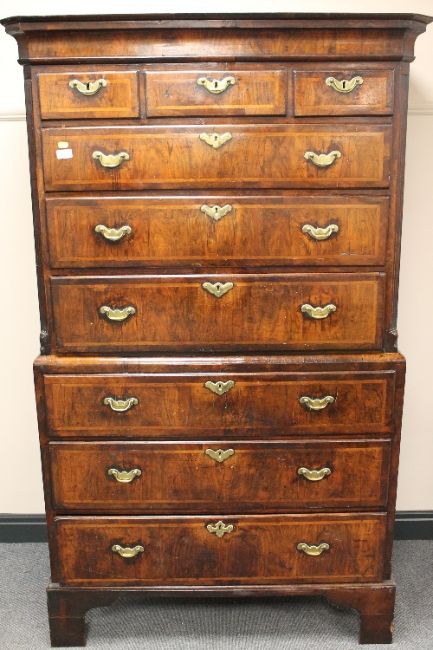 An eighteenth century inlaid walnut nine drawer double chest on bracket feet, width 106cm.