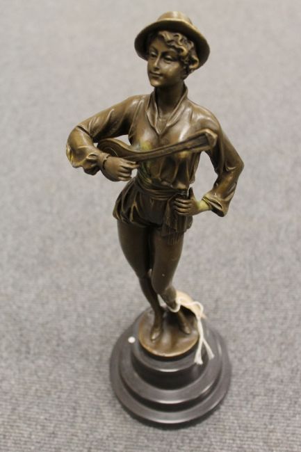 After Preiss - bronze study depicting female guitarist on black marble socle, height 40 cm. CONDITION REPORT: Good Condition, twentieth century example