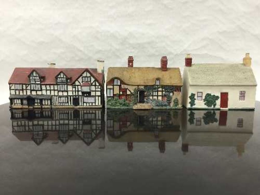 Three Goss pottery cottages; 'A Window in Thrums', 'Shakespeare's House' and 'Anne Hathaway's Cottage'. (3)