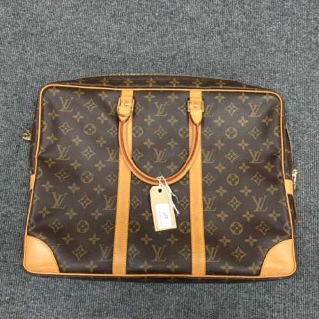 Louis Vuitton : a document case, monogram canvas, with tan trim, with twin carry handles, width at widest point 41 cm.