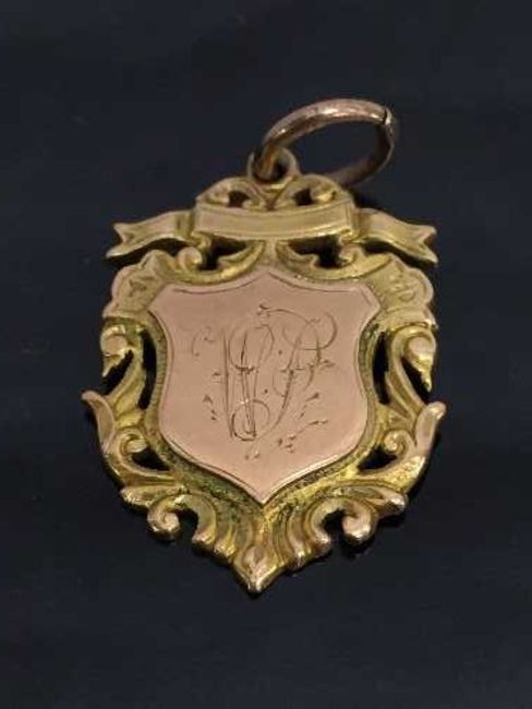 A 9ct gold fob with inscriptions dating 1904, 13.5g.