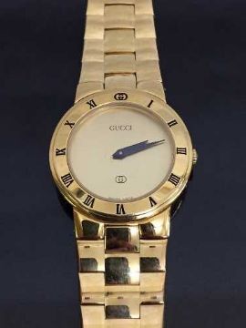 A Lady's gold plated Gucci wrist watch, model 3300L, in retail box .