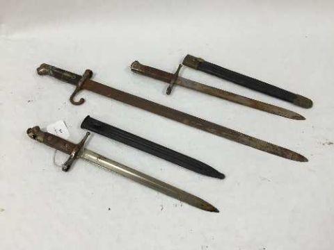 An Italian Model 1891 Carcano knife bayonet, together with another similar Caracano bayonet and an Italian Vetterli-Vitale bayonet. (3) CONDITION REPORT: Vitale bayonet with considerable rust. Carcano bayonets with rust to steel parts but generally good