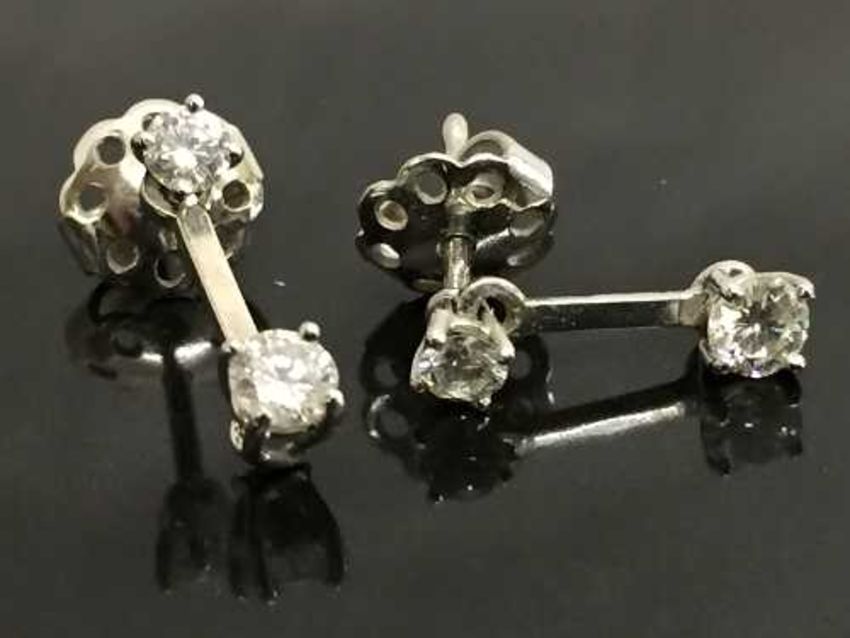 A pair of 18ct white gold diamond drop-stud earrings. (2)