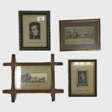 Four early twentieth century woven silk panels by Thomas Stevens to include The Lady Godiva Procession, Peeping Tom, The Late Earl of Beaconsfield and The Good Old Days, all parts framed. (4) CONDITION REPORT: All in fair condition, some showing time staining to mounts otherwise good.