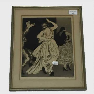 Dame Laura Knight : View of Spanish Dancers, drypoint etching with aquatint, signed in pencil, with margins, 27 cm x 22 cm, framed.