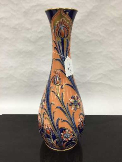 A James Macintyre gilded vase, decorated with red and blue flowers on peach ground, height 41 cm. CONDITION REPORT: Excellent conditions.