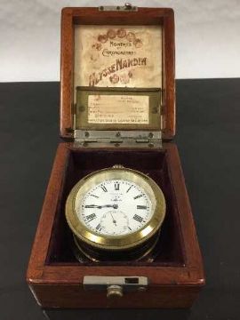 A large silver deck watch by Ulysee Nardin, numbered 26702, case 55 mm diameter, dial and movement signed and numbered outer case engraved HS2 (hydrographic survey), in original Ulysee Nardin box with ivory disk impressed and numbered 26702. CONDITION REPORT: Excellent condition and ticking away.