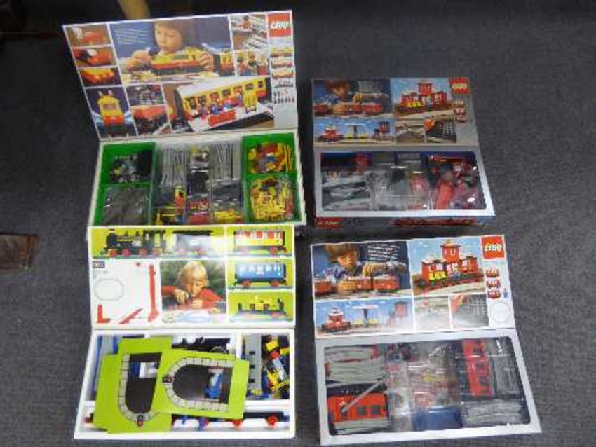 Four Lego sets, all relating to trains, numbers D182, 7725, 7725 and 7740, all parts boxed. (4) CONDITION REPORT: All appear to be in used condition, packaging in good condition.We apologise that we are unable to guarantee that any set is 100% complete, further images are available upon request.