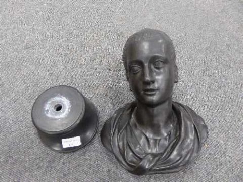 A Wedgwood bust of Horace, after the antique, height 38cm. CONDITION REPORT: The bust does not sit on its plinth properly. The wooden dowel in the base is loose. There are some scratches and scuffs to the surface of the bust. There is some crumbling to the plaster on the underside.