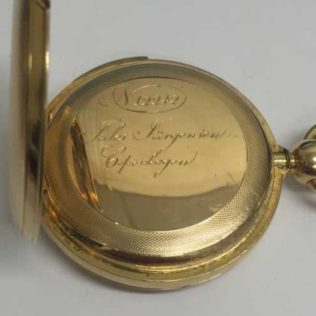 A rare 5 minute repeating pocket watch by Jules Jurgensen, Copenhagen, movement and case numbered 12242, 18ct gold full hunter case, dial and movement all fully signed, in original Jules Jurgensen box, gross weight 135.9g.