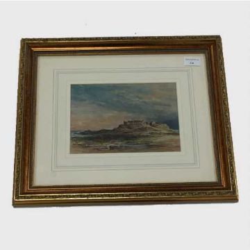 Charles George : St. Mary's Island, Whitby, oil on board, signed, dated 1887, 16 cm x 23 cm, framed.