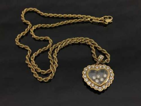 An 18ct gold Chopard Happy Curves diamond pendant on chain, 18.4g, with retail box and documents.