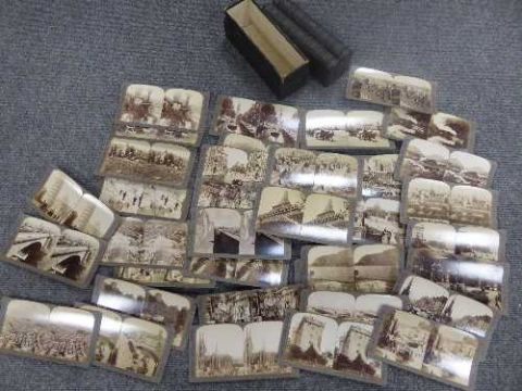 An early twentieth century American mahogany and nickel mounted Stereoscope slide viewer, by Underwood & Underwood, New York, together with a large quantity of slides, approximately 36 original slides by Underwood & Underwood and approximately 170+ other slides.