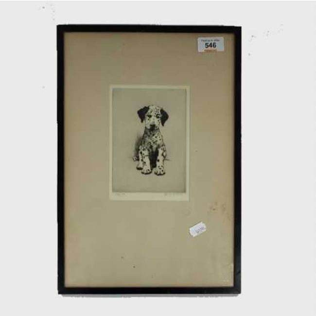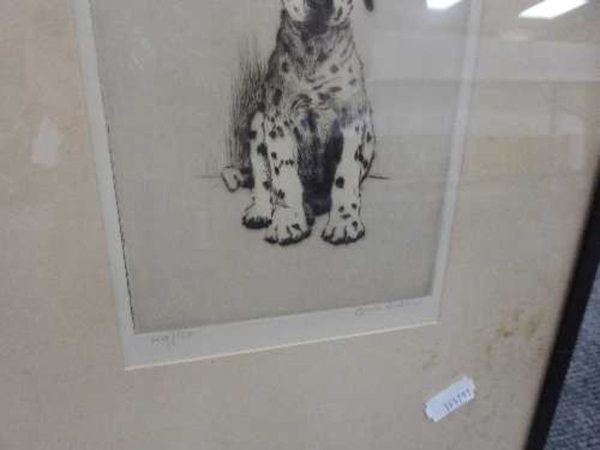 Cecil Charles Aldin : Loopy - The Dalmatian Puppy, etching, signed in pencil, numbered 49/150, with margins, 15 cm x 10 cm, framed. CONDITION REPORT: Mount and glass dirty, otherwise good. Not examined out of the frame.