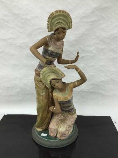 A Lladro bisque figure of two girls dancing in traditional dress, height 53cm. CONDITION REPORT: Very good, no apparent faults