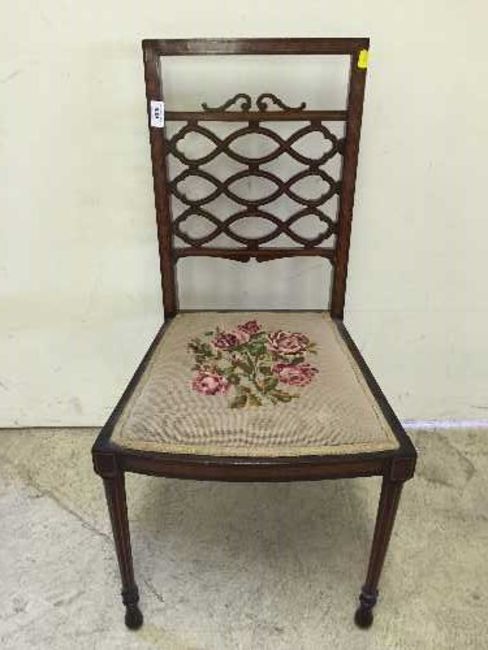 A pair of nineteenth century inlaid mahogany bedroom chairs. (2)
