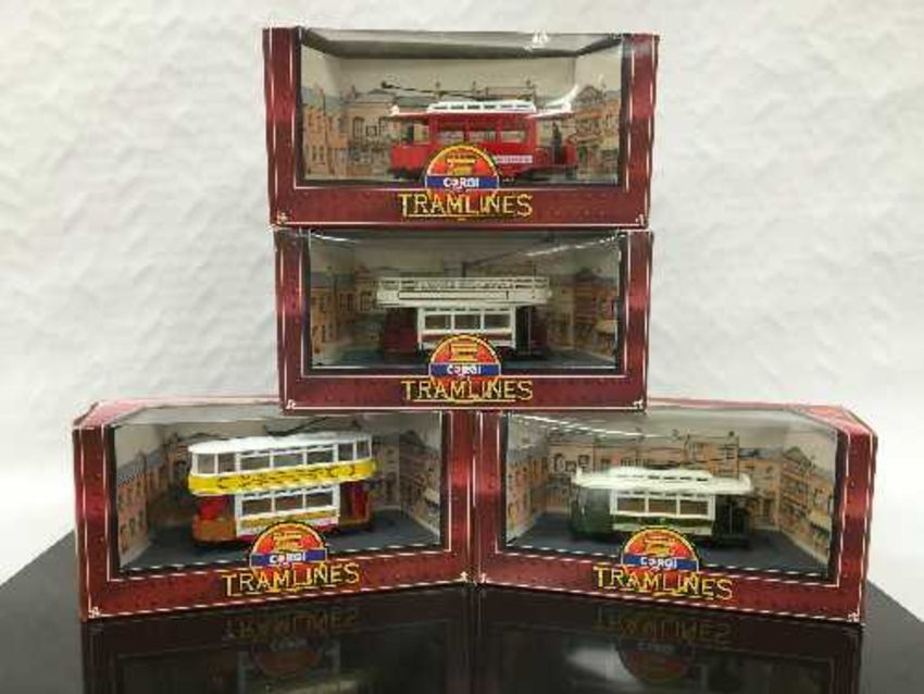 A Corgi 60 Years of Transport three-part boxed set of die-cast models, together with seven Corgi Transport of the 30's three-part boxed sets and four Corgi Tramlines die-cast models. (12) CONDITION REPORT: Light wear to external packaging, otherwise very good condition for all parts.