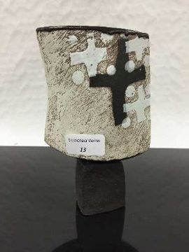 John Maltby (born 1936): A studio pottery cup form vase or vessel decorated with crosses, painted signature to inside of foot, height 18.5cm. CONDITION REPORT: Good condition, no apparent faults or restoration.