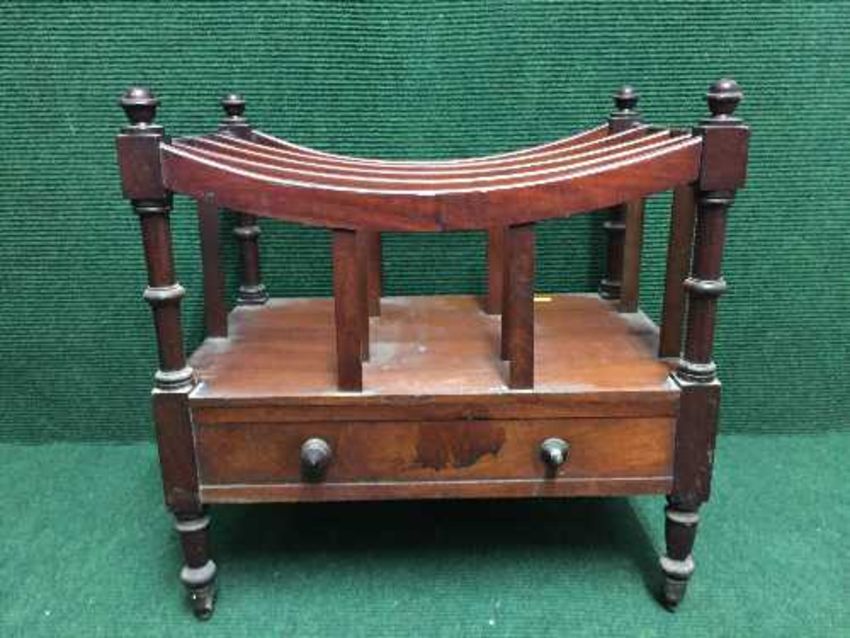 An early 20th century mahogany Canterbury fitted one drawer