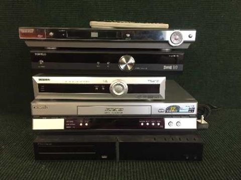 A Pioneer DVD player, Panasonic VCR player and Topfield personal video recorder, digital received and a Yamada dvd player - all with remotes