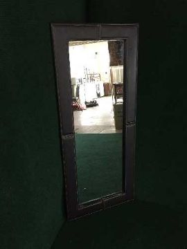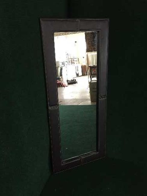 A leather framed mirror