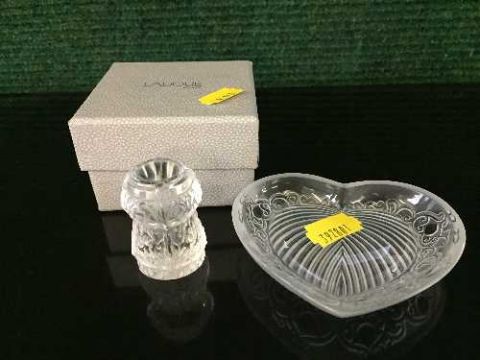 A Lalique of France glass bowl in the shape of a heart together with boxed Lalique crystal cork.