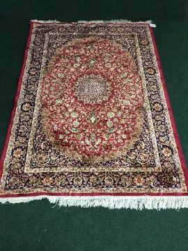 A silk finished fringed Keshan rug, 190 cm x 140 cm, on red ground