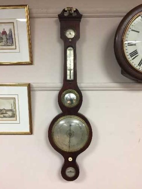 A nineteenth century mahogany banjo barometer with silvered dial