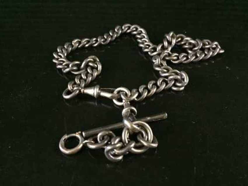 A silver Albert chain with t-bar