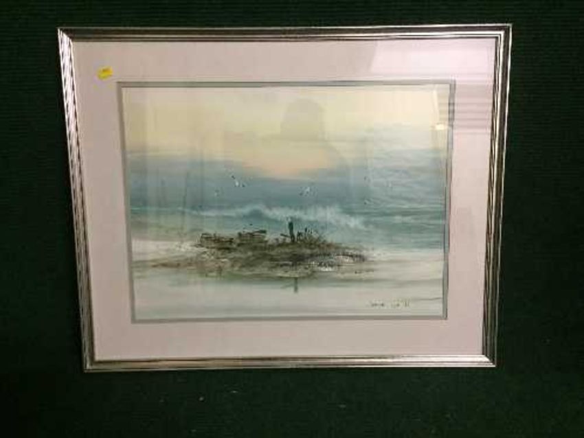 A set of three silvered framed watercolours depicting coastal scenes signed Leburn Sylvie, dated '86