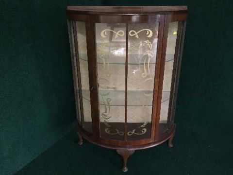 A walnut d-shaped display cabinet