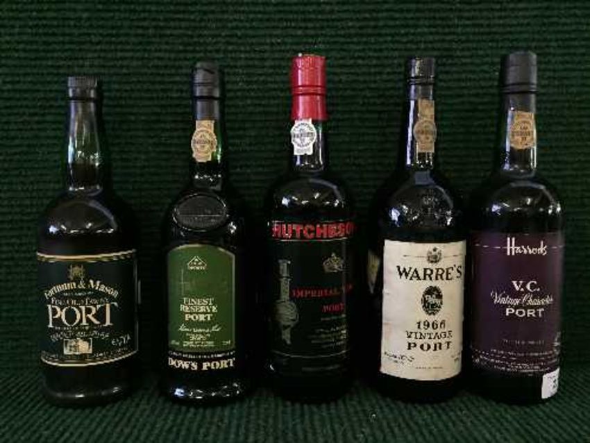 Warre's Vintage Port 1966, together with Fortnum & Mason Fine Old Tawny Port, Hutcheson Imperial Tawny Port, Harrods Finest Reserve Port and Harrods Vintage Character Port, five bottles in total. (5)
