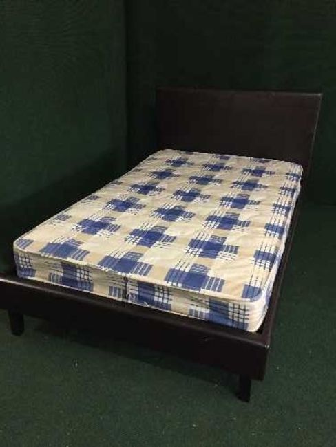 A 4' leather bed frame and mattress
