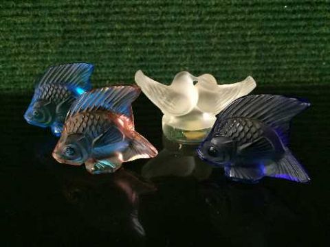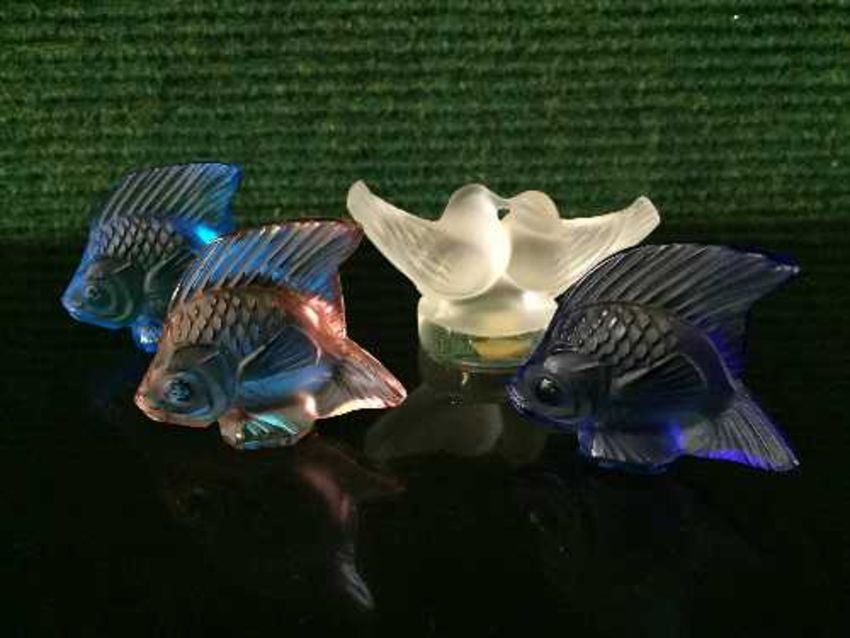 Four Lalique glass ornaments - Bird group and three fish