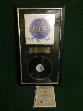 A framed Bee Gees montage, signed album with certificate of authenticity