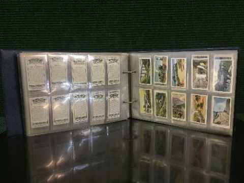 A bound folio of cigarette cards relating to trains : Great Western Railway by Wills, Railway Engines by Wills, Railway Locomotives by Wills, Empire Railways by Churchman, Trains of the World by Gallaher, Railway Equipment by Wills, Famous Railway Trains by Churchman, Railway Working by Churchman, Wonderful Railway Travel by Churchman, Modern Railways by Ogdens, Railway Engines by Geoffrey Phillips, Trains by John Brindley and Locos by John Brindley. (One album)