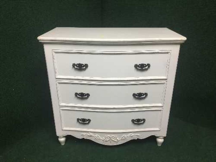 A painted bow fronted three drawer chest