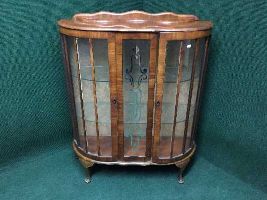 A walnut d shaped display cabinet