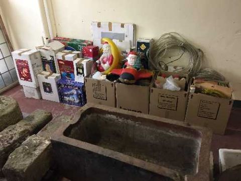 A large quantity of Christmas decorations including rope lights, Santa Claus ornaments etc