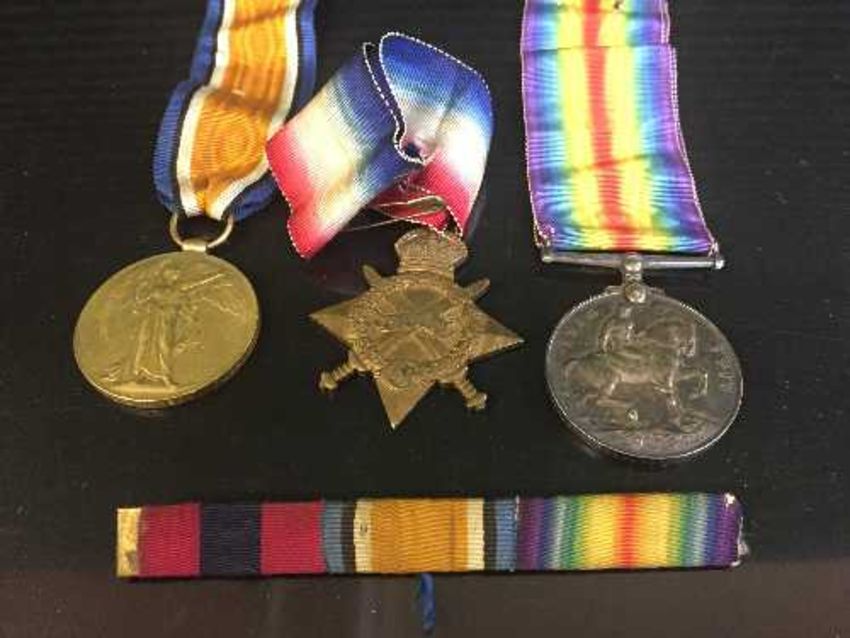 A box of a trio of WWI Durham Light Infantry medals with ribbons