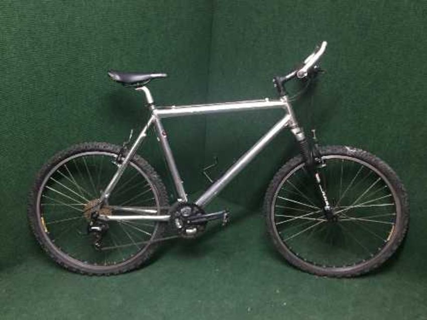 A chrome front suspension mountain bike