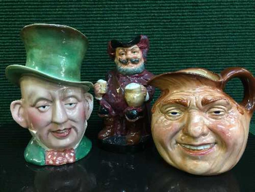 A Royal Doulton Toby Jug - Falstaff, numbered 8328, together with John BarleyCorn, and a Beswick jug modelled as Mcawber. (3)