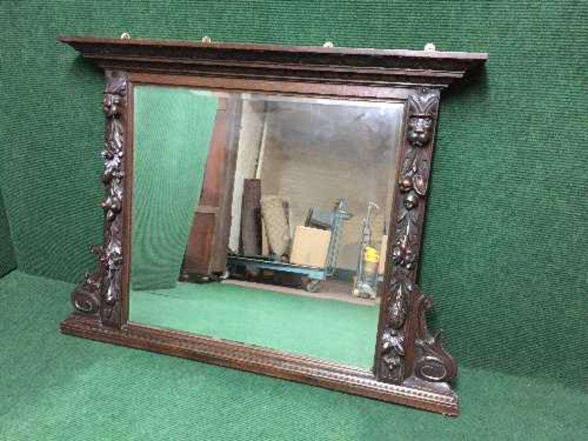 An early twentieth century heavily carved oak overmantel mirror
